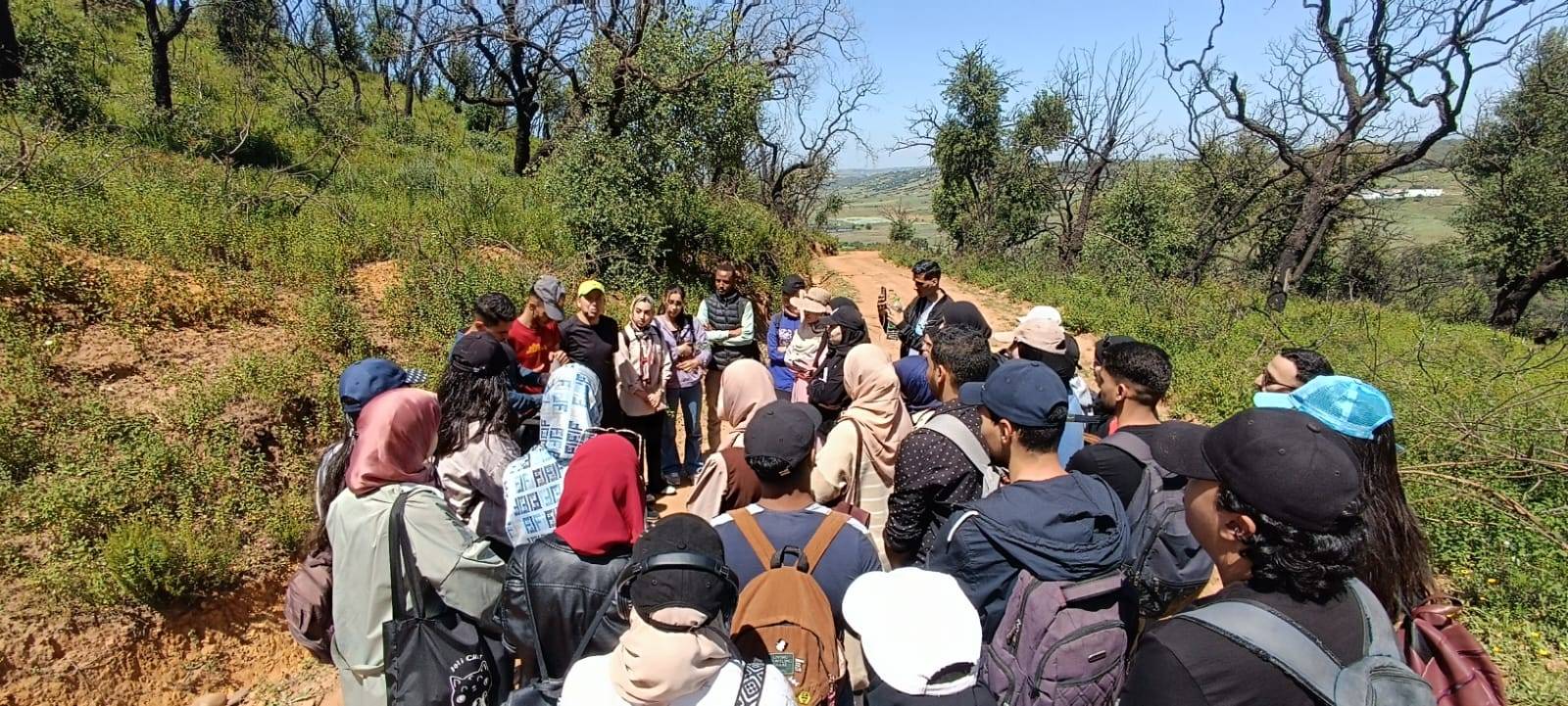 نظم طلبة ماستر الموارد الحيوية وطلبة ماستر المصاحبة المقاولاتية زيارة ميدانية تربوية إلى غابة تابعة لجماعة خميس الساحل باقليم العرائش سبق و أن تعرضت لحرائق مهولة في سنة 2022 و الى ضيعة نموذجية تابعة لأكاديمية فن الحياة حيث كان في استقبال الطلبة الأستاذ محمد احليمي مدير أكاديمية فن الحياة و الذي قدم شروحات مهمة حول أهمية المحافظة على الغابة و مكن الطلبة من فهم أساليب الاستدامة المتبعة في إدارة الموارد الطبيعية و استكشاف نموذج فلاحي تطبق فيه مبادئ الإستدامة و المحافظة على التنوع البيولوجي و الفلاحة الطبيعية.