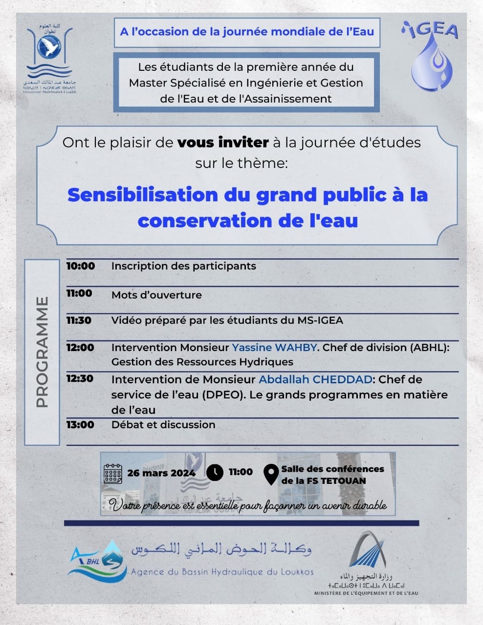 Journée d'études sous le thème :"SENSIBILISATION DU GRAND PUBLIC À LA CONSERVATION DE L'EAU."