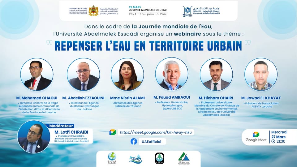 A l'occasion de la Journée mondiale de l'Eau, l'Université Abdelmalek Essaâdi organise un webinaire sous le thème: "Repenser l'eau en territoire urbain".
